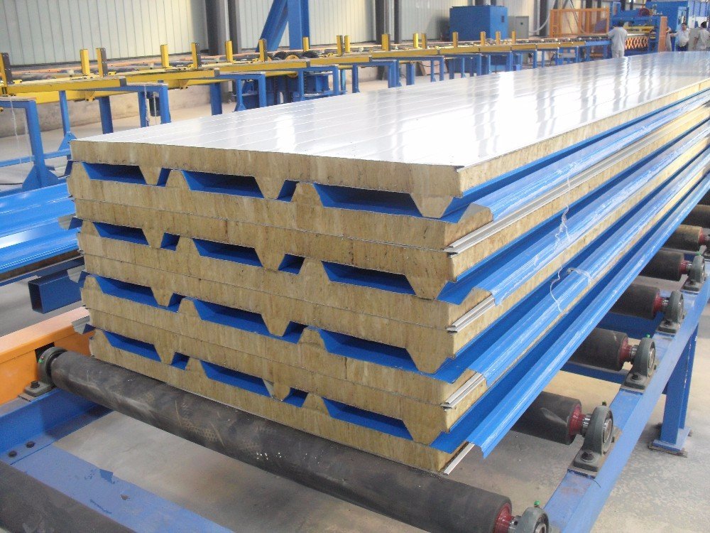 Центральный элемент – наполнитель с теплоизоляционными свойствами. Наружные поверхности представлены профилированными листами металла. Главное отличие между стеновыми и кровельными изделиями заключается в наличии у последних высоких ребер, придающих стройматериалу большую жесткость (профнастил).