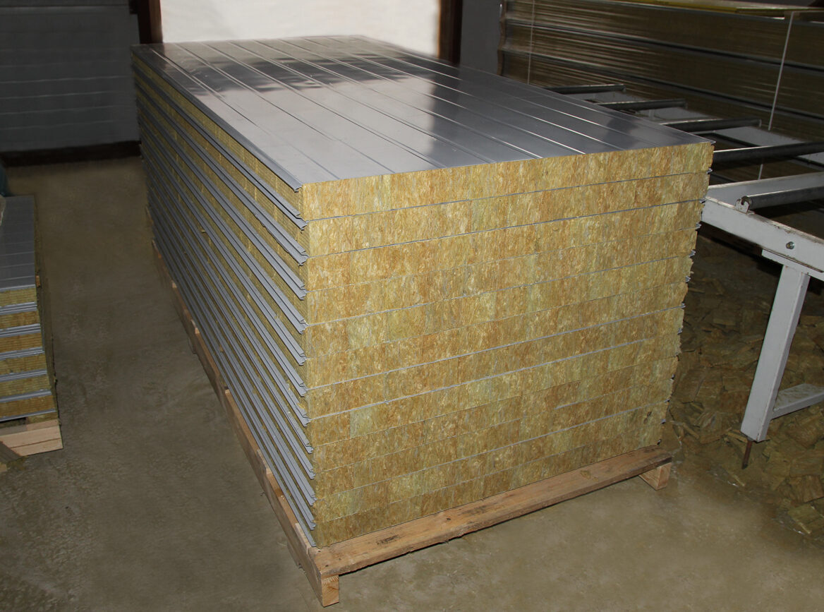 Сэндвич-панели с минватой состоят из двух стальных пластин, расположенных на одной линии. Между ними помещен слой изоляционного материала — базальтовой минеральной ваты. Этот материал является экологически чистым и не наносит вреда здоровью человека, благодаря своему природному происхождению. Размеры данных панелей могут варьироваться: их длина колеблется от 2 до 12 метров, в то время как ширина зависит от типа.